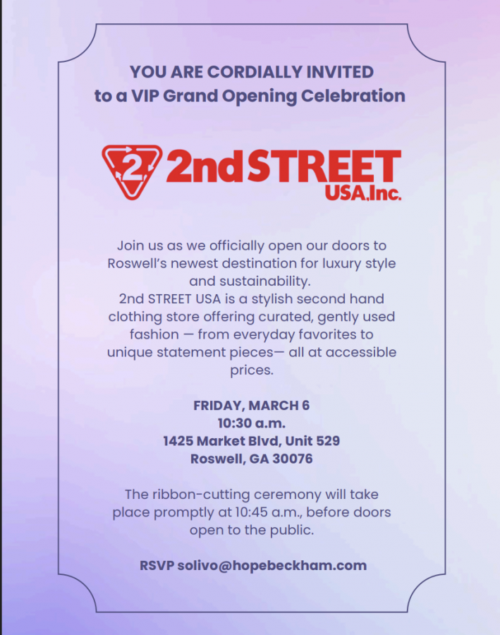 Join us as we officially open our doors to Roswell’s newest destination for luxury style and sustainability. 2nd STREET USA is a stylish second-hand clothing store offering curated, gently used fashion — from everyday favorites to unique statement pieces— all at accessible prices.