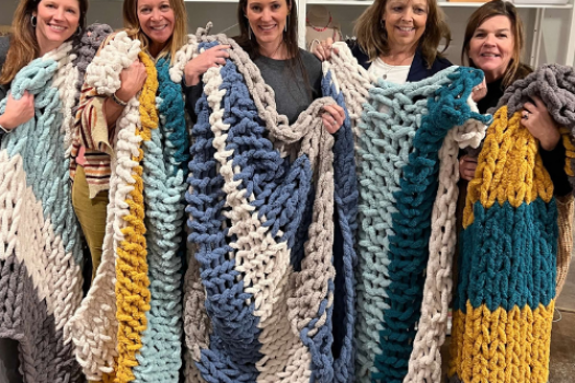 Hand-knit your own cozy chunky blanket with all supplies included. No experience needed, and no needles...