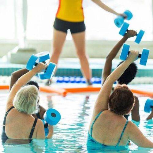 A faster-paced cardio workout that uses the resistance of water to add intensity and enhance strength. Foam noodles or handheld weights are used to develop muscle and core strength, joint range of motion, balance, and coordination.