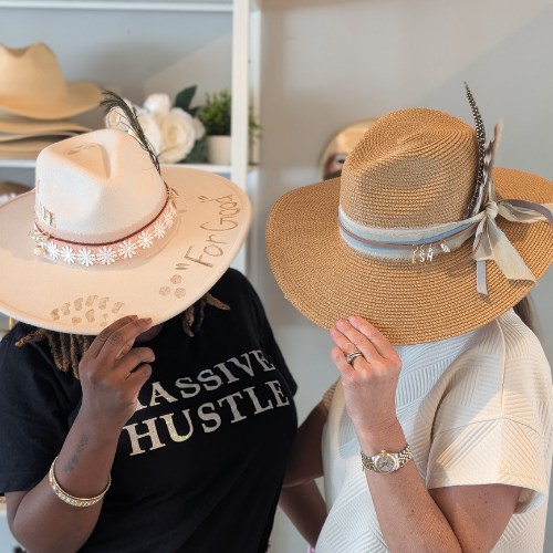 Create a one-of-a-kind hat with your choice of base and decorative accents, with optional hand-burned designs.