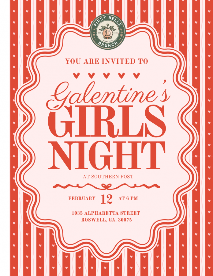 Calling all Roswell ladies! 💕 Gather your girls and join Southern Post for a Galentine’s-style progressive dinner celebrating friendship and fun. Hosted by First Belle Brunch, ladies will enjoy four light courses with curated beverage pairings from Bey, Azotea, Grana, and Silla del Toro as you sip and stroll through the evening. Along the way, connect over interactive games, icebreakers, and plenty of laughs—the perfect excuse for a night out with the special gals in your life. Cheers to great food, great drinks, and even better company!