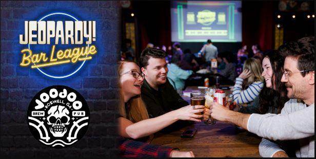 This is Jeopardy! Get ready for an epic trivia experience like no other with Jeopardy! Bar League. Geeks Who Drink is partnering with Sony Pictures Television and bringing America's Favorite Quiz Show® out of the studio and straight to your local bar. No more shouting at your TV: with Jeopardy! Bar League you get a thrilling, team-based experience with real clues from the Jeopardy! writers' room, all on your phone. Gather your smartest (or most entertaining) friends, form your team, and head to Voodoo Brewing Co. in Roswell for Jeopardy! Bar League every Tuesday at 7pm.