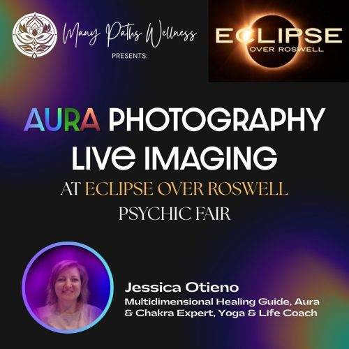 Experience a captivating window into your energetic world through live aura and chakra imaging with Jessica Otieno — where science meets spirit, and your energy comes to life in vibrant color. Watch as your aura shifts and changes in real time, revealing the subtle patterns of your emotional, physical, and spiritual state. This 20-minute mini session offers an illuminating check-in with your energy — a chance to see where you’re balanced, where you’re blocked, and how your inner light wants to express itself. Each session includes: • Live energy visualization and personalized interpretation • Aura and chakra personality profile report •Printed and digital aura photo headshot (This is a special 20-minute mini experience — the full 40-minute session is regularly $95 at the studio!) Why You’ll Love It: • Gain new awareness of your energy, vitality, and emotional patterns • Discover how your thoughts and feelings shape your energetic field • Learn ways to realign and restore harmony within • Bridge the physical and spiritual aspects of your being About the Event: Eclipse Over Roswell is more than a marketplace — it’s a community space for healing, learning, and connection. Come explore spiritual tools, receive energy work, and share meaningful conversations with like-hearted souls. Join us for this special offering and step into a field of light, insight, and transformation — together we rise, heal, and shine brighter.