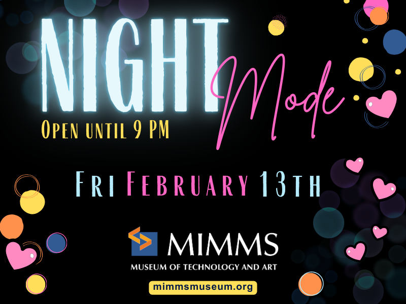 The museum stays up late for Night Mode! Join us for a fun, after-hours evening with a Card Bar and a heart-shaped, electronic craft event happening multiple times throughout the night.