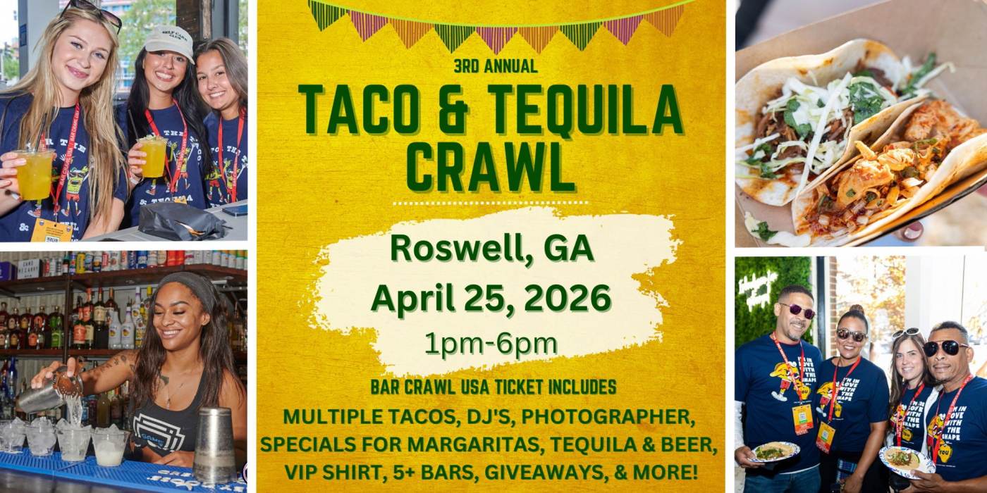 Roswell Taco & Tequila Bar Crawl: 3rd Annual, April 25th, by Bar Crawl USA