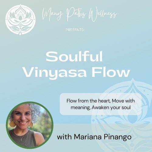 Soulful Vinyasa Flow with Mariana | Mindful, Heart-Led Yoga Introducing Mariana as a new substitute teacher supporting the Many Paths Wellness community. Her presence brings a gentle, intentional, and heart-led energy to the mat—offering students a grounded yet expressive space to move, breathe, and reconnect. As a substitute teacher, Mariana supports MPW by holding space with care, curiosity, and embodiment—ensuring continuity, warmth, and integrity in our shared practice whenever she steps in to teach. Expect a graceful balance of strength and softness as you explore physical postures alongside the subtle messages held within the body. Each class creates space for self-expression, nervous system awareness, and soulful nourishment—leaving you feeling grounded, inspired, and aligned. Ideal for: Students seeking an expressive, embodied flow that bridges movement with meaning. Benefits include: • Cultivating emotional clarity and resilience • Strengthening mind–body–spirit awareness • Opening energetic pathways for healing and growth • Encouraging self-trust and intuitive movement • Enhancing presence, creativity, and vitality Come move with intention, listen inward, and let your practice become a conversation with your soul